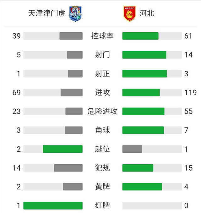 河北首发:22-池文一、37-潘喜明、5-梅米舍维奇、28-张呈栋、21-崔麟、15-王秋明、13-尹鸿博、25-廖伟(U23)(46`39-么旭辰(U23))、6-塞尔纳斯、8-保利尼奥(60`11-胡人天)、10-马尔康