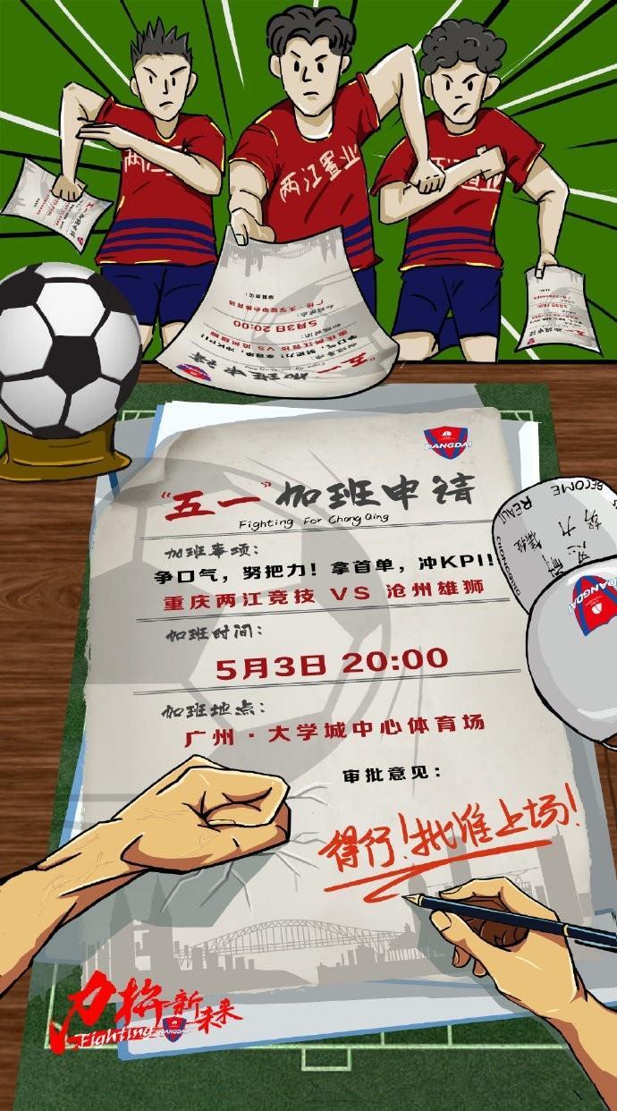 重庆两江竞技对阵沧州雄狮海报: 五一“加班”申请
