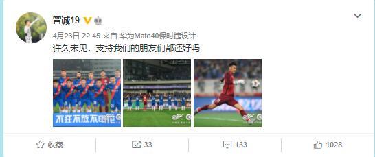 北京时间4月23日,中超首轮焦点大战,上海申花2-1战胜北京国安。赛后申花队门将曾诚发博问候球迷。