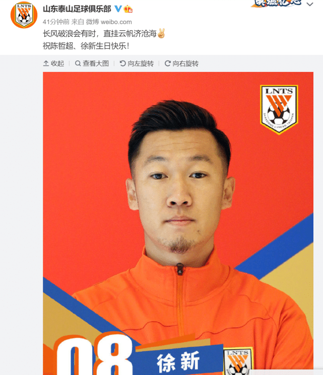 在上赛季夺取足协杯冠军之后,山东泰山居然因为以前的官司而被亚足联剥夺了2021赛季亚冠联赛的资格。对于如此严重的处罚,让山东泰山队打击太大,反而刺激到球队打算在2021赛季的中超联赛大干一场。徐新、石柯、吉翔等国内知名球员,以及K1联赛上个赛季的MVP。随后,山东泰山也准时抵达了广州赛区,徐新成为当地媒体追逐的焦点。这一位现役国脚是山东泰山新赛季的“头牌”,他在今年决定不与广州恒大签订续约合同,希望获得新的主力岗位。而就在今天,山东泰山队也为徐新庆生,用“长风破浪会有时,直挂云帆济沧海”祝他生日快乐。