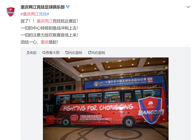 重庆两江竞技:球队大巴抵达酒店,官微却漏了一个谈字