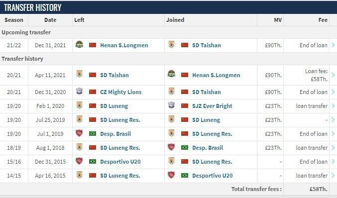 24直播网讯4月11日德国《转会市场》更新显示,24岁的泰山球员陈蒲租借加盟河南嵩山龙门。此外,与陈蒲一起租借加盟球队的还有艾合买提-吐尔逊江。