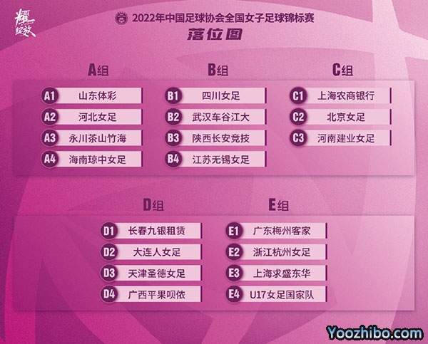 A组:山东体彩、河北女足、永州茶山竹海、海南琼中女足